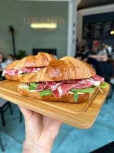 22 RONIngrediente: Croissant*, selectie mezeluri** , cremă de brânză, salata asortata 150gr...